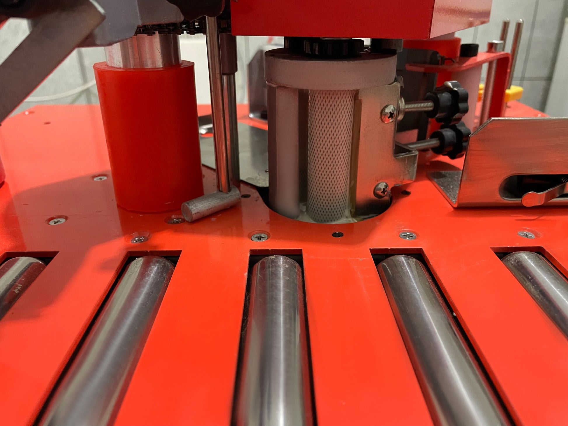 - com roletes rolamentados de alta qualidade que facilitam o deslocamento da chapa na bancada, diminuindo a fadiga do operador